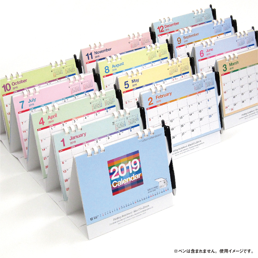シンプルなデザインで使いやすく、オリジナルのペンホルダー付きで便利(意匠登録済)、紙リングが環境に優しい『卓上エコカレンダー ペンホルダー付き』を、昨年に引き続き名入れ対応2019年版にてリリースしました。